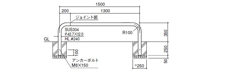 旧品番:AA-5UJ-1500のアンカーボルトM8×150のタイプが必要なときはご連絡下さい。