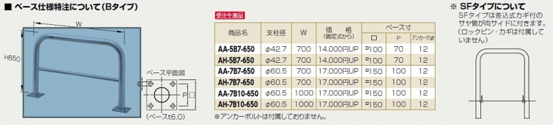 【サンポール】 AA-7SK7-650 アーチ 差込式カギ付【取寄品】