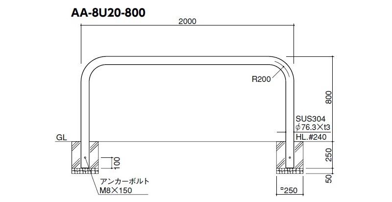 AA-8SF20-800 アーチ 差込式フタ付 サンポール | 加藤金物