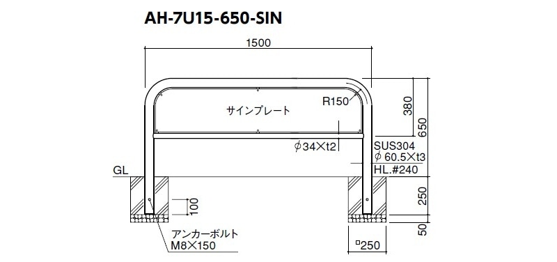 【サンポール】 AH-7SF15-650-SIN アーチ 差込式フタ付 アーチ サインセット【取寄品】