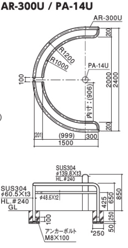 【サンポール】 PA-14U UDGラウンドゲート 車いすゲート バリアフリー新法対応 中央支柱【取寄品】