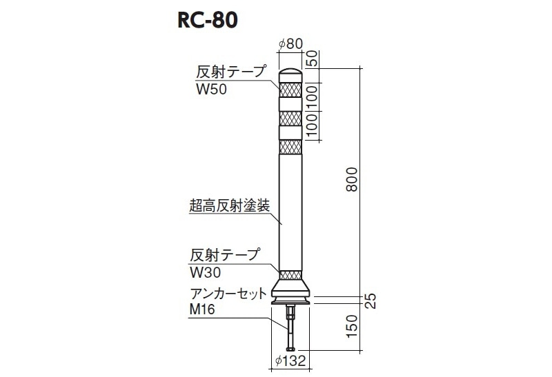 人と車、環境にもやさしいリサイクルゴム素材を採用した超高反射塗装(スーパー・ハイレフ・コート)のラバーポストです。