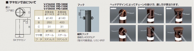 V-F360SK ボラード 差込式カギ付 サンポール | 加藤金物