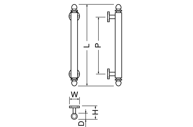 全長(L):300 足巾(P):210 高サ(H):49 座巾(W):40φ 径(D):20φ