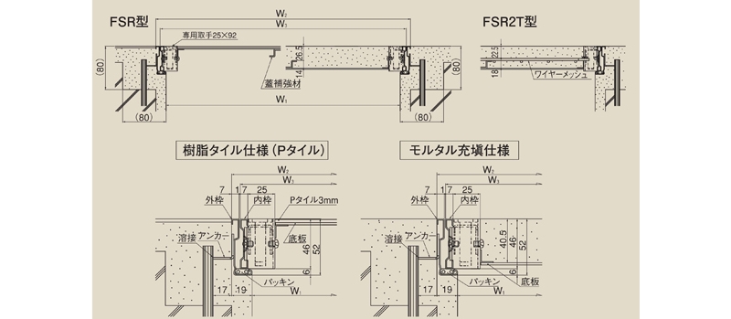 FSR75 床点検口 枠、底板:ステンレス鋼製外枠パッキン付 H52タイプ75.90サイズは内蓋2枚割 Pタイル・モルタル兼用 ダイケン | 加藤金物