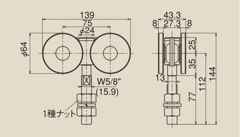 #4 4WH-B #4(塗装)スチール 4号ベアリング複車 ダイケン | 加藤金物