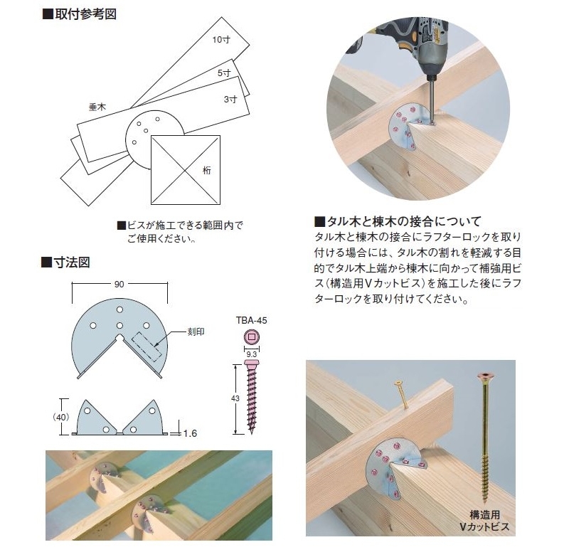 3.タル木の左右側面のどちら側にも取り付けできますが、1本のタル木に対しできるだけ同一面は避けてください。