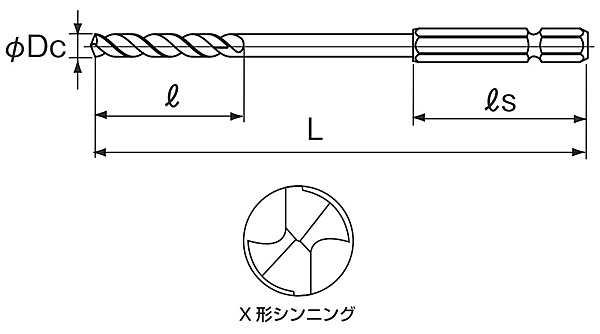 先端角:118度 先端:X形シンニング