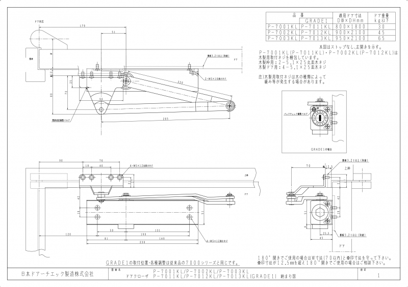 P-7001KL ドアクローザ ニュースター | 加藤金物