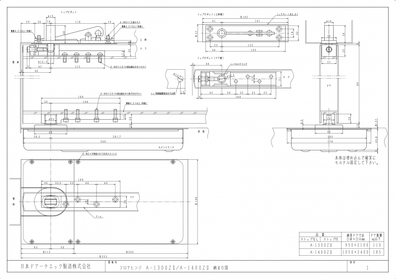 A-1400ZII フロアヒンジ ニュースター | 加藤金物