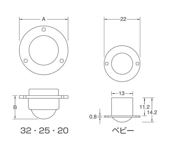 寸法A:41、B:19.5、ボール径:22.2、振込寸法24.7×6
