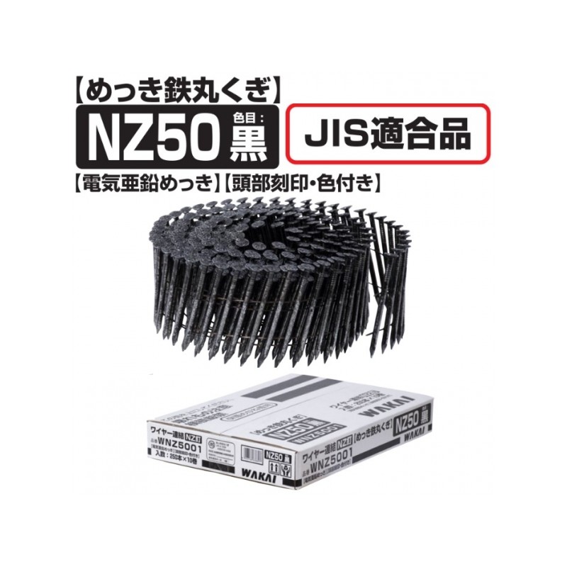 WNZ5001 ワイヤー連結釘 NZ釘 めっき鉄丸くぎ(1ケース=250本×10巻) 若井産業 | 加藤金物