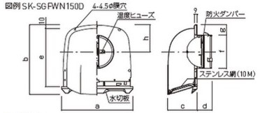 SK-SGFWN100D ワイド型フード付ガラリ(防火ダンパー・ステンレス網付) 神栄ホームクリエイト(新協和) | 加藤金物