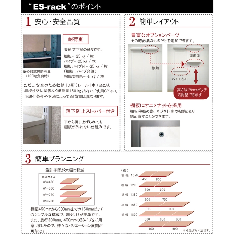 SA-ESR900 壁面取付システム収納 ES-rack レール 商品コード96084163 清水(株) | 加藤金物