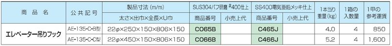 C065B 吊金具 エレベーター吊りフック AE-135-C B型 大和建工材 | 加藤金物