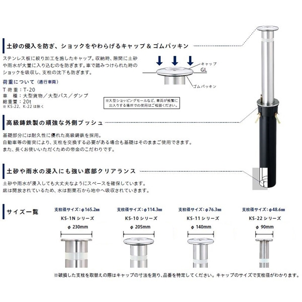 KS-10CS バリカー上下式 車止め スタンダード φ114.3 2重スプリング付 帝金 | 加藤金物