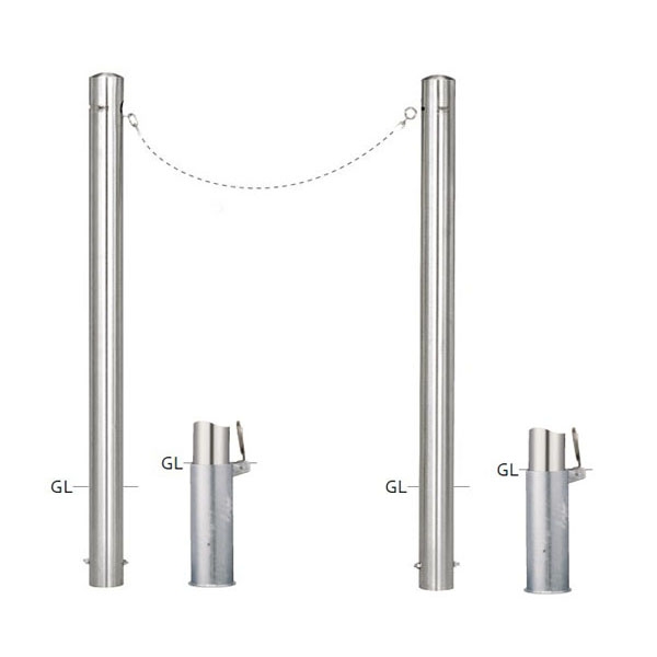 バリカーピラー型 車止め スタンダード ステンレスタイプ φ76.3 H850/クサリ内蔵型
