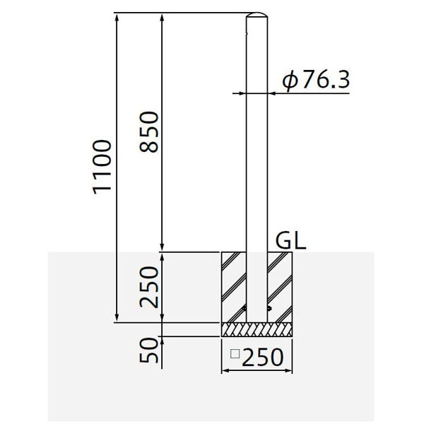 バリカーピラー型 車止め スタンダード ステンレスタイプ φ76.3 H850/クサリ端部用
