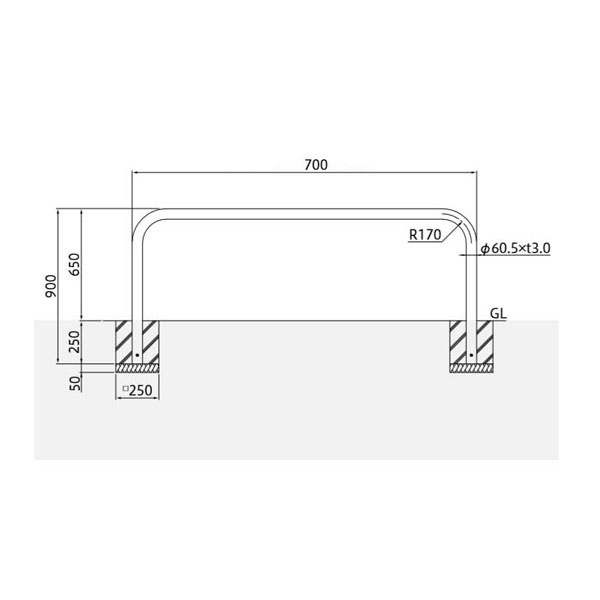 バリカー横型 車止め スタンダード ステンレスタイプ φ60.5 W700 H650