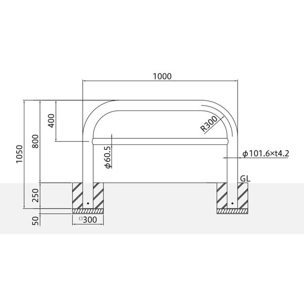 Y84P3-10 バリカー横型 車止め スタンダード スチールハイショルダータイプ φ101.6 W1000 横桟付き 帝金 | 加藤金物
