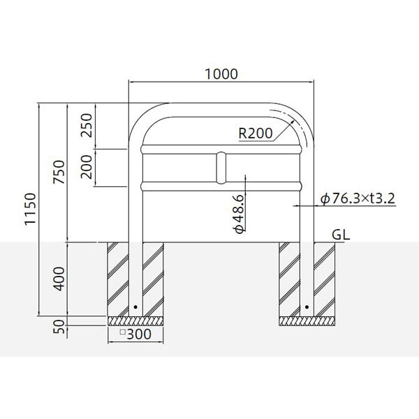 バリカー横型 車止め スタンダード スチールHGタイプ φ76.3 W1000 バリカー横型 車止め スタンダード スチールHGタイプ φ76.3 W1000 バリカー横型 車止め スタンダード スチールHGタイプ φ76.3 W1000