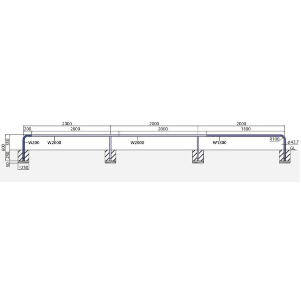 形状:中間支柱 W2000 ベースプレート付 要納期確認・受注生産品のため、納期確認次第ご連絡致します。