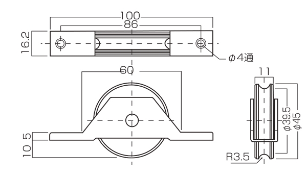 Uステンレール用戸車(鉄枠) Uステンレール用戸車(鉄枠)