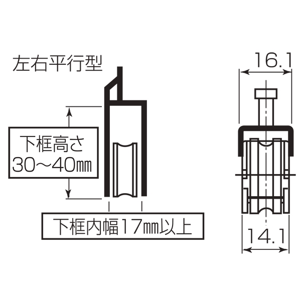 サッシ用取替戸車 MT17(A)025型(左右平行型) サッシ用取替戸車 MT17(A)025型(左右平行型) サッシ用取替戸車 MT17(A)025型(左右平行型)