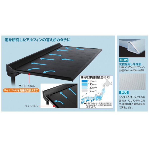 【アルフィン】 AD-RN ADシリーズ 逆勾配ひさし 化粧樋無し 三方樋仕様・サポートポール仕様(外壁RCのみ庇の後付け可能)【取寄品】