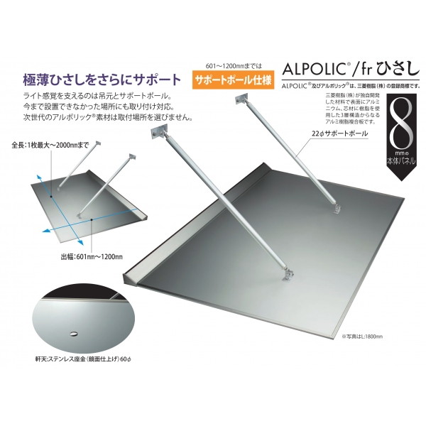 アルポリックひさし サポートポール仕様(外壁RCのみ庇の後付け可能)