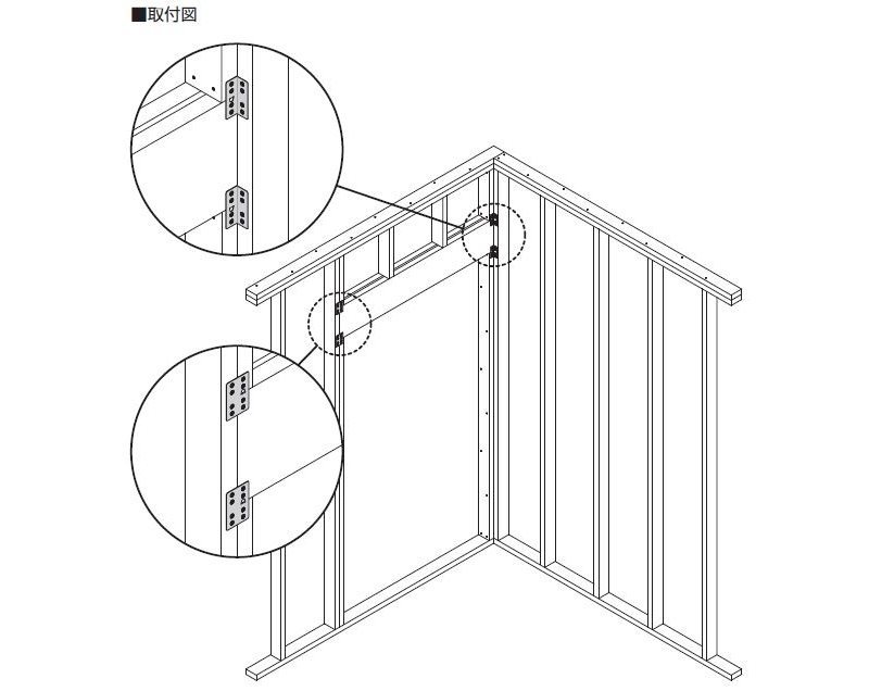●枠組み壁工法のまぐさ開口部を補強する金物です。