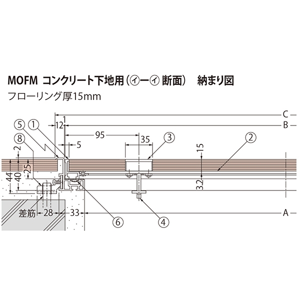 MOFM-600 フローリング床材用(フローリング厚12.5mm・15mm) 屋内用 一般形 アルミニウム+スチール製 アルミニウム目地 コンクリート下地用 カネソウ | 加藤金物