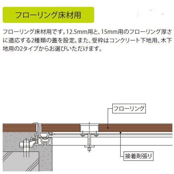 フローリング床材用(フローリング厚12.5mm・15mm) 屋内用 一般形 アルミニウム+スチール製 アルミニウム目地 コンクリート下地用