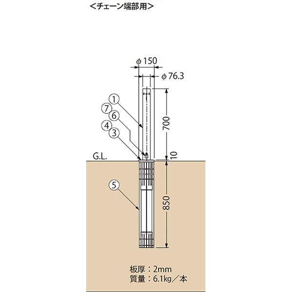 Φ76.3×700mm <チェーン端部用>交換用 支柱のみ