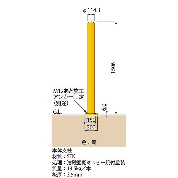 Φ114.3×806mm 後付タイプ コンクリート充填タイプ