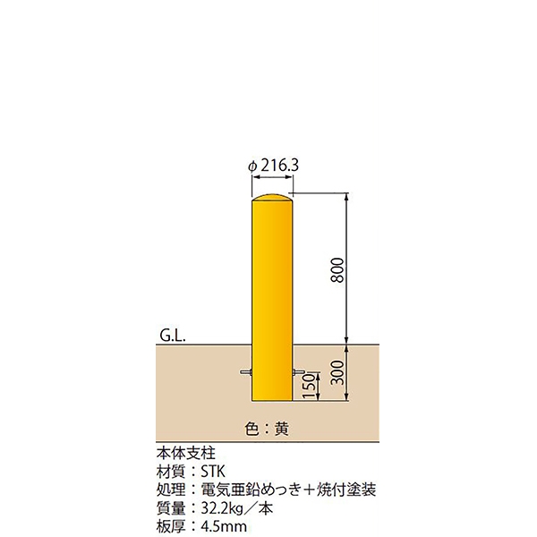 Φ216.3×806mm 後付タイプ コンクリート充填タイプ