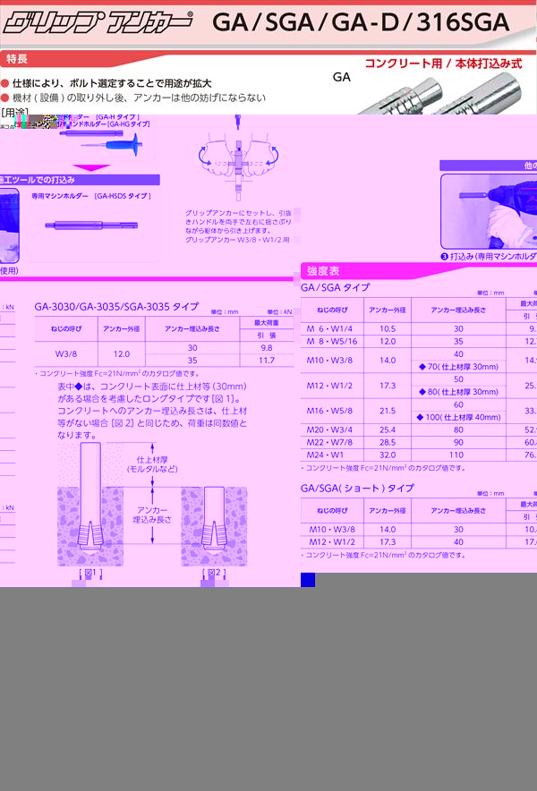 グリップアンカーGAタイプ(ミリねじ) スチール製三価クロメート処理 グリップアンカーGAタイプ(ミリねじ) スチール製三価クロメート処理 グリップアンカーGAタイプ(ミリねじ) スチール製三価クロメート処理